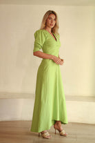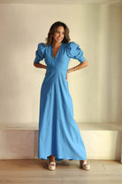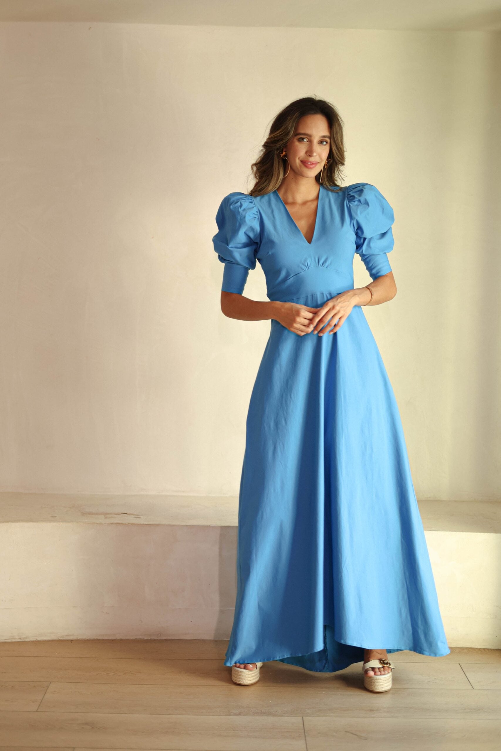 VESTIDO MAXI LARGO ESCOTE V MANGA CORTA FAROL