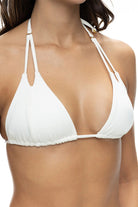 Vestido de baño / bikini, top triángulo color marfil con original corte delantero en sus tiras de amarre y cobertura graduable del busto a tu gusto. La simpleza de lo cotidiano, inspiran la elegancia y el confort .